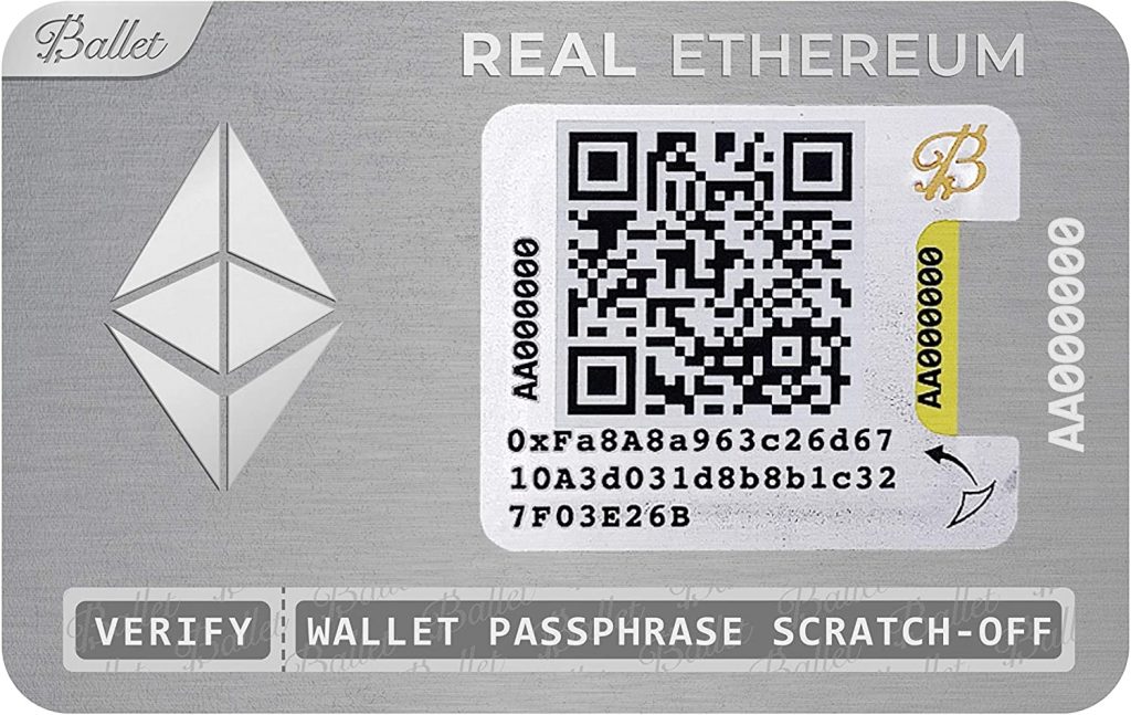 Un monedero físico ethereum con 2500 ALUX.